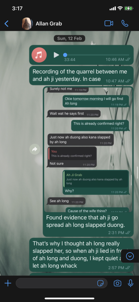 Saw you this morning again. Wonder whether you have heard about what happened yesterday where I tear apart ah ji’s lies in front of everyone…